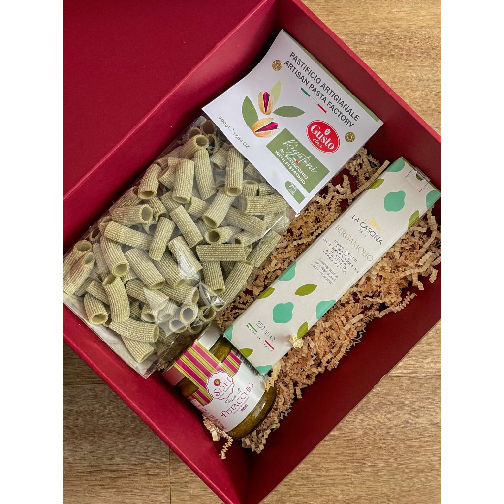 Dárkový Balíček Pistáciové Pesto + Pasta + Bergamotový Olej (Sicílie)