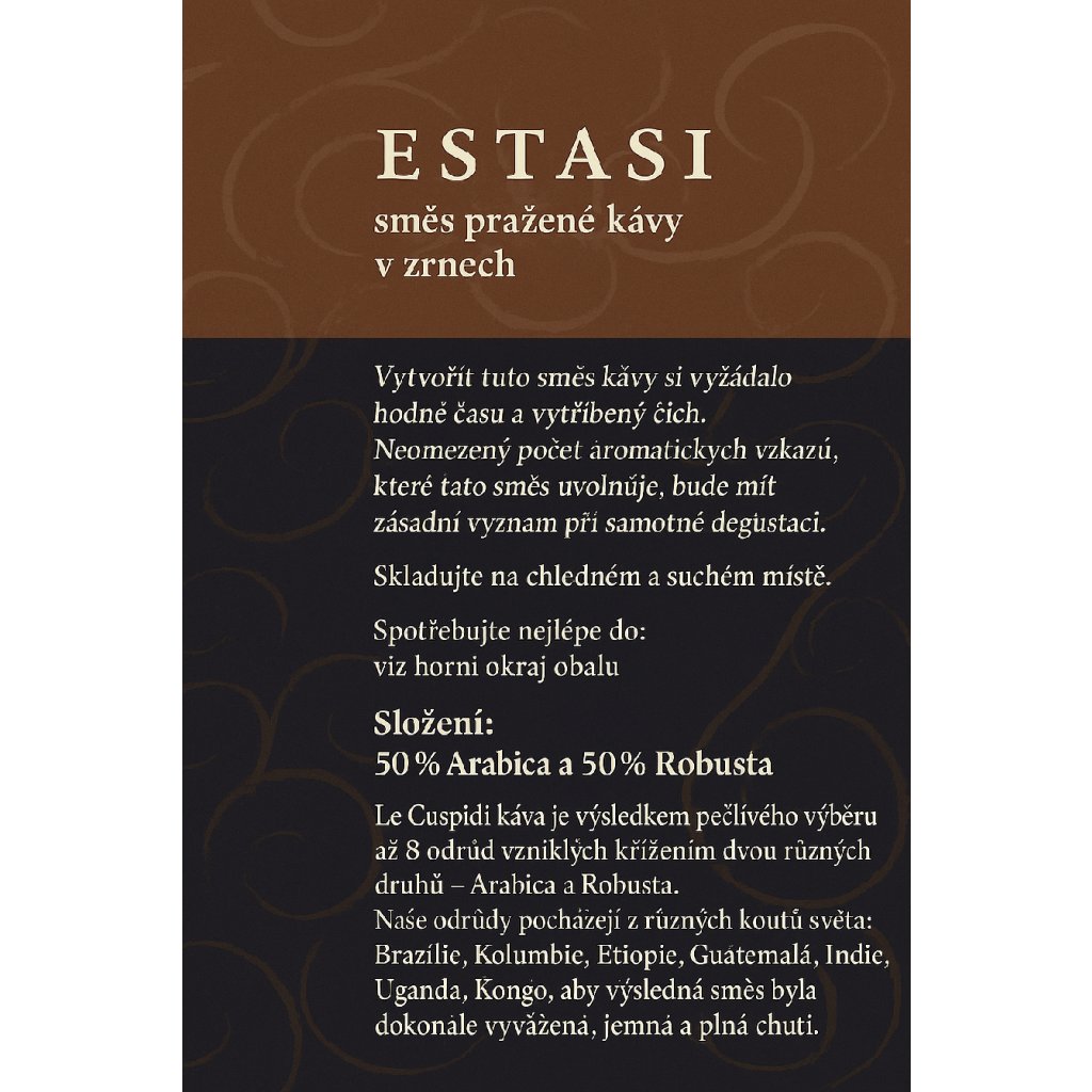 Původ zrn: Brazílie, Kolumbie, Etiopie, Guatemala, Indie, Uganda, Kongo